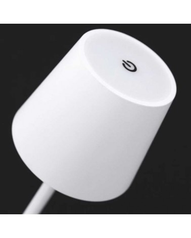 Lámpara de sobremesa portátil con LED incorporado de 3,5W. Batería recargable tipo USB-C 5V de 2600mAh en 4-6 horas, para así no tener que utilizar cables y llevarla donde quieras. Apta para interior y exterior con IP54.