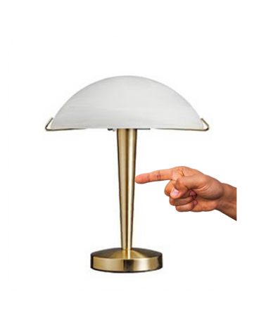 Lampara de sobremesa 24cm graduable con control tactil cristal blanco base cuero E14 20W