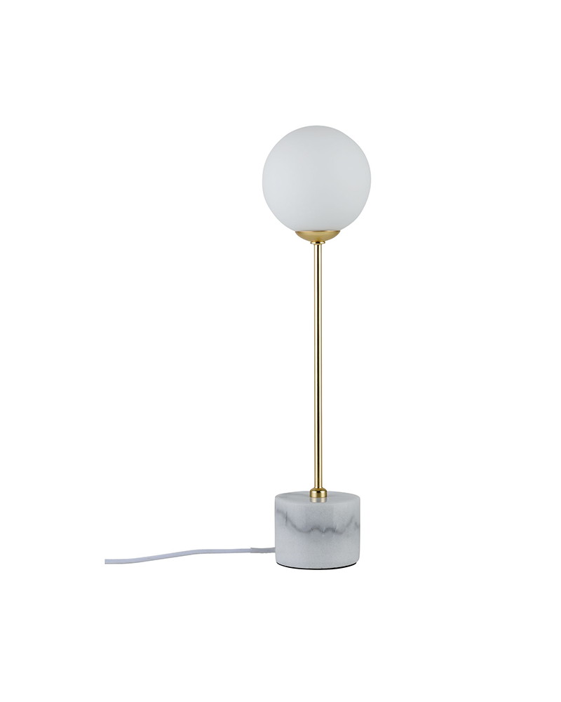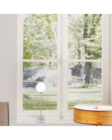 Lámpara muy moderna super tendencia, combina materiales como mármol, cristal con acabados como el dorado de moda y blanco atemporal. Luminaria de estilo escandinavo. Cable con funda de tela. Con interruptor de cable de encendido / apagado. No incluye bombilla.