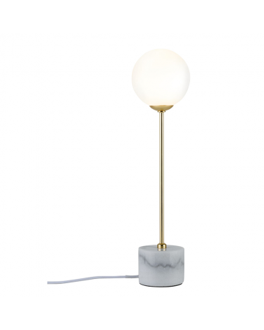 Lámpara de mesa 40cm pantalla esfera cristal con fuste en dorado y base de mármol 10 W G9