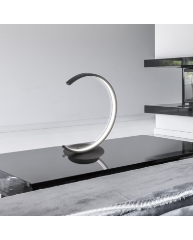 Original lámpara de mesa de 27cm de altura LED 8W 4000K, fabricada de metal y acrílico acabado en negro. Con un diseño minimalista. Ideal para la iluminación de salas de estar o despachos. Con interruptor en la base de ON/OFF para facilitar el encendido y el apagado.
