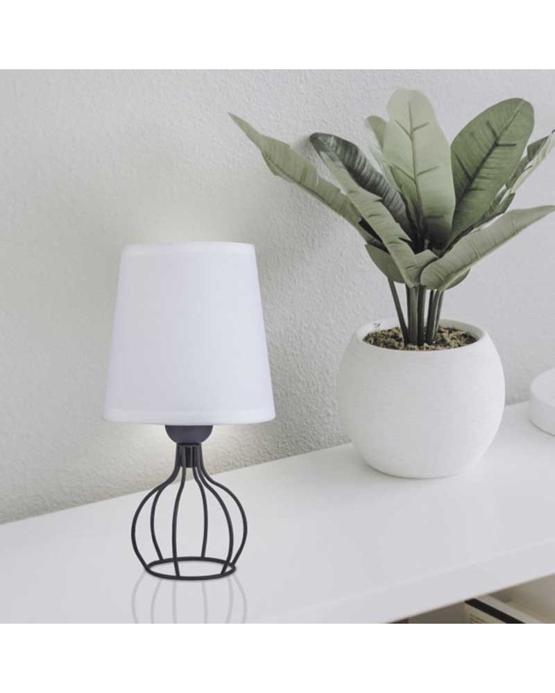 Lámpara de mesa 26cm de metal y tela acabado blanco y negro E27