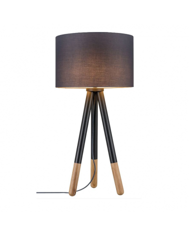 Lámpara de sobremesa 36,5cm pie madera con pantalla cuadrada de fibra E27