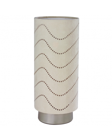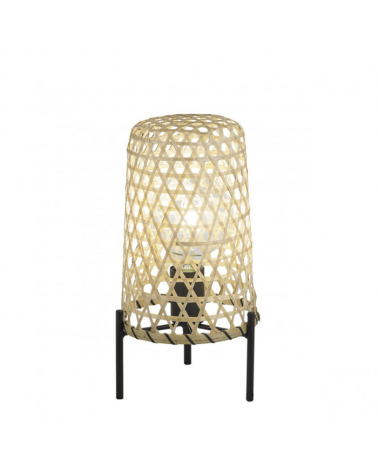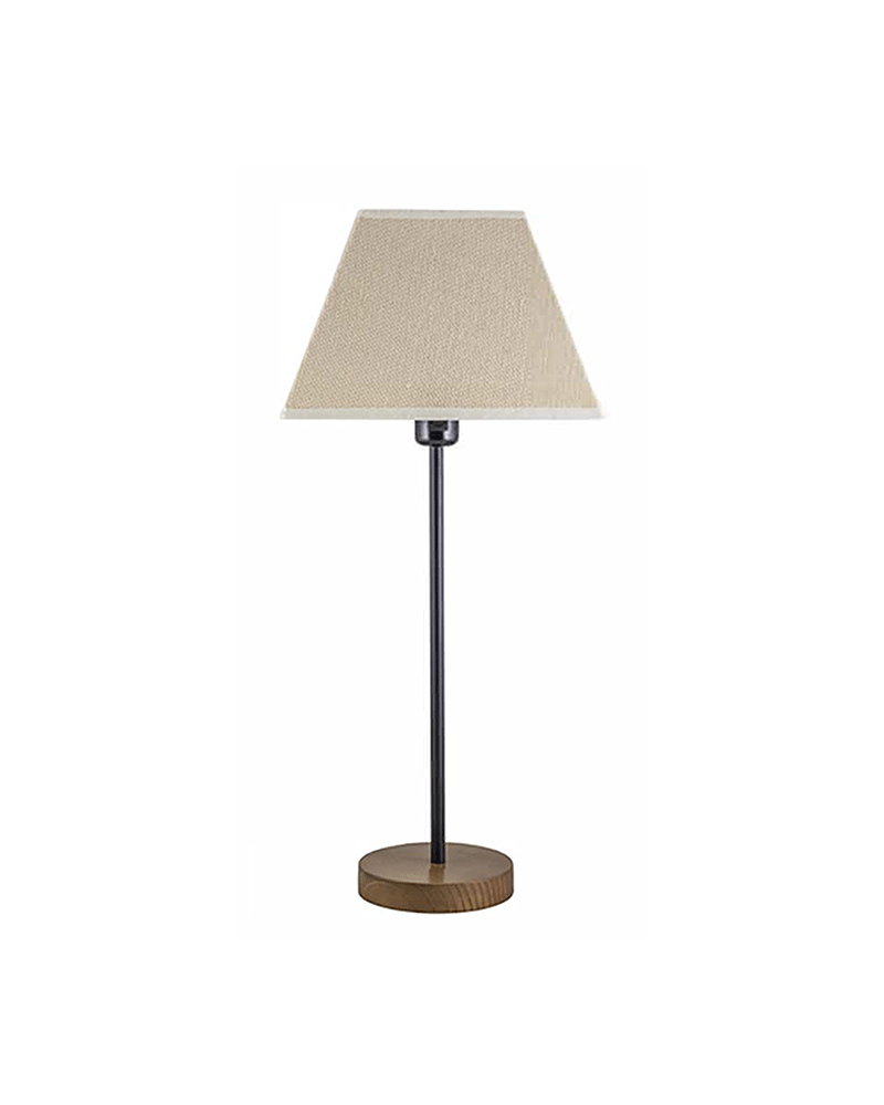 Lámpara de sobremesa con base redonda de madera barnizada y pantalla cuadrada de 25cm en fibra natural, el complemento perfecto para darle a tu dormitorio o salón ese toque cálido e intimo que necesita.