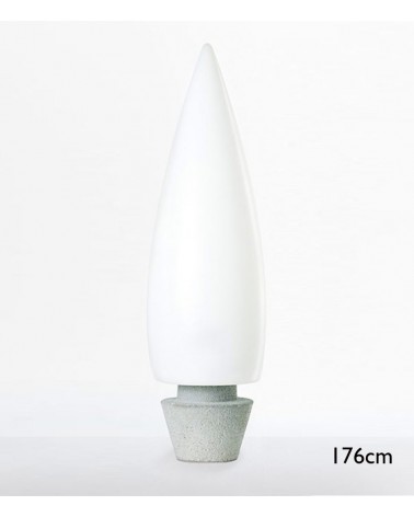 Lámpara de pie para exterior de 150 cm de altura con forma cónica, fabricadas en PE antivandálico blanco IP65. Disponible en LED 4 x 12W 8304Lm. Luz cálida 3000K y en fluo 2G11 2x55W. Medidas 176x44,5 cm. Modelo Kanpazar 150C con base de hormigón portátil. Contiene dos bultos de 51,5 x 51 x 156 + 35 x 35 x 32 cm.