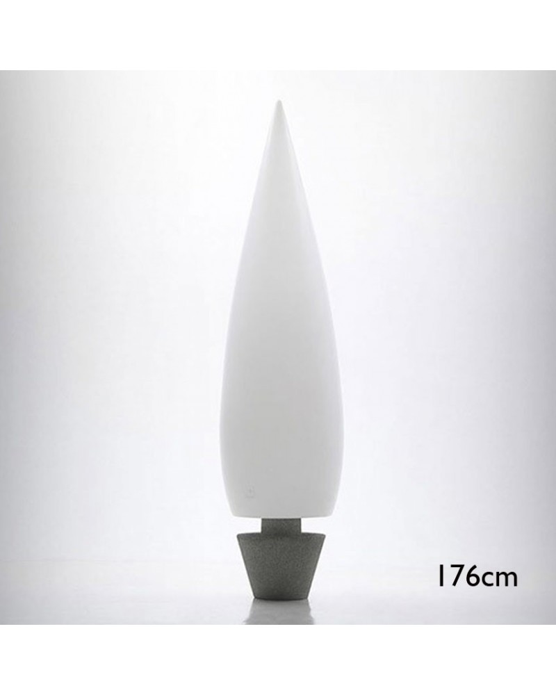 Lámpara de pie para exterior de 150 cm de altura con forma cónica, fabricadas en PE antivandálico blanco IP65. Disponible en LED 4 x 12W 8304Lm. Luz cálida 3000K y en fluo 2G11 2x55W. Medidas 176x44,5 cm. Modelo Kanpazar 150C con base de hormigón portátil. Contiene dos bultos de 51,5 x 51 x 156 + 35 x 35 x 32 cm.