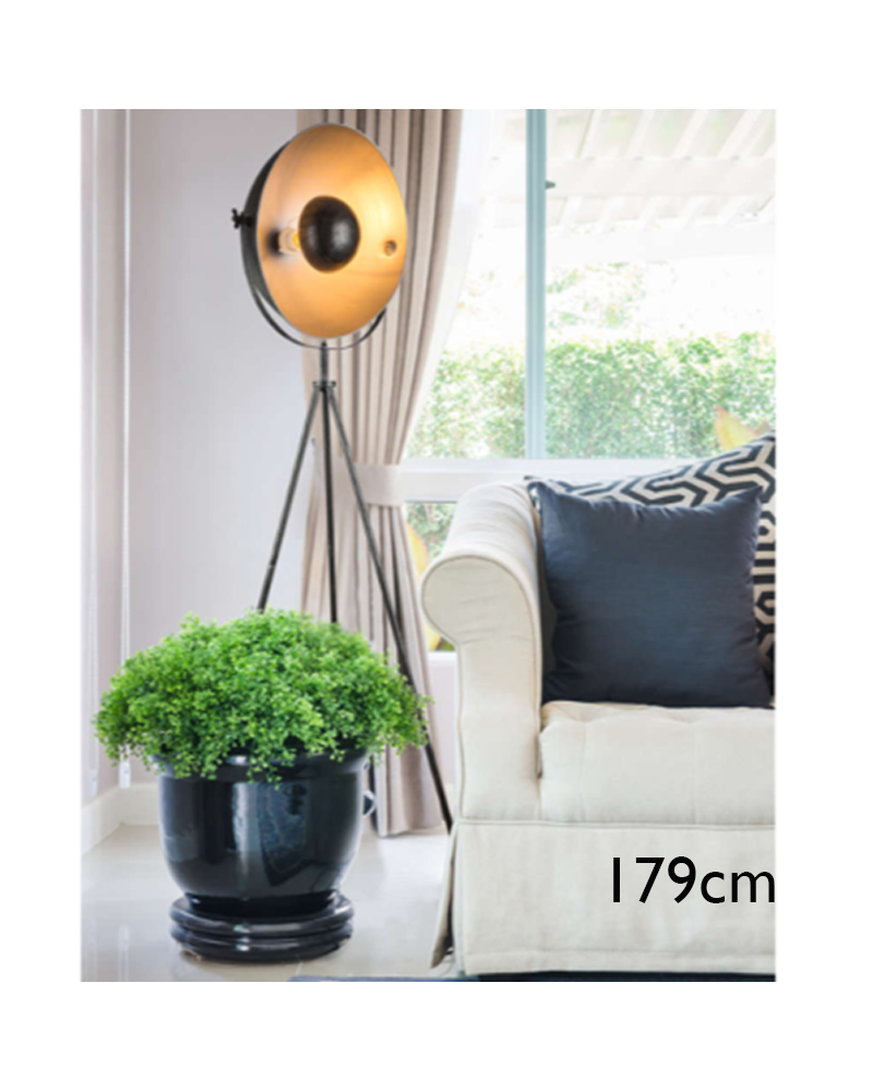 Lampara de pie Galileo 179cm E27 oscilante pantalla negra y cobre con tripode altura regulable