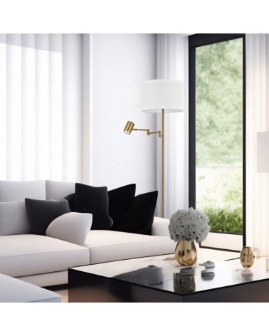 La extraordinaria lámpara de pie negra de tres patas "Galileo" impresiona por su aspecto original y llamativo. La pantalla se puede girar y es color dorado por dentro. Además, esta lámpara es regulable en altura, se acciona mediante un interruptor on-off y tiene una toma E27, para la que se puede elegir libremente una fuente de luz de hasta 60 vatios.