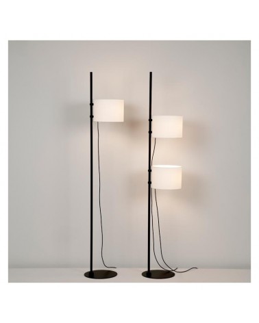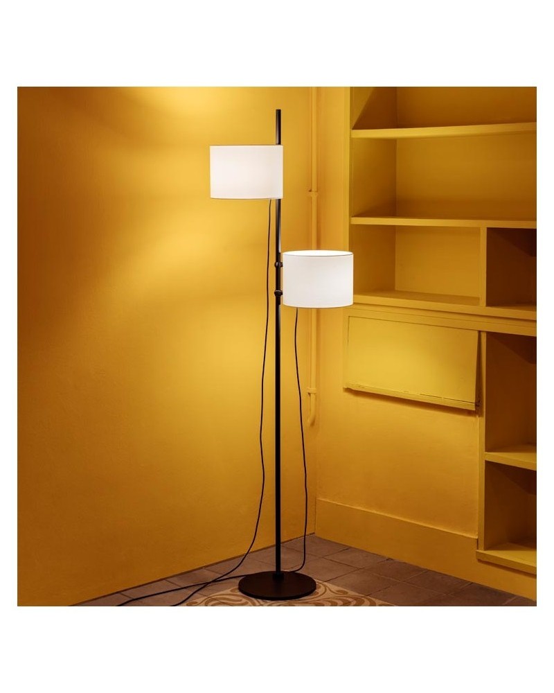 Lámpara de pie con dos pantallas de diseño permite múltiples posibilidades de altura de pantallas y posición, totalmente personalizables creando un estilo armónico y personalizable a cualquier estancia que necesite un golpe de estilo y sugerencia con luz indirecta. Fabricado en España.