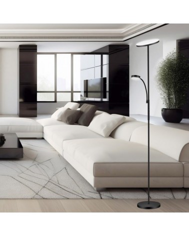 Original lámpara de pie de 150cm de altura de estilo moderno. Con pantalla con forma de cúpula fabricada en metal y disponible en varios acabados negro mate y cromo. Proyecta la luz por la parte inferior. Con interruptor en el pie facilitando el encendido y el apagado. Perfecta para cualquier rincón de su hogar.