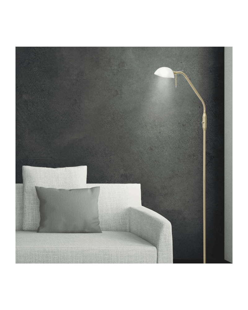 Lámpara de pie ideal para lugares de lectura y relax de con acabado clásico pero diseño minimalista con pantalla de cristal en blanco.