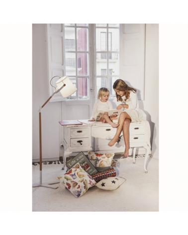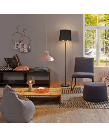 Lámpara de pie en metal color plata con punto de luz para lectura orientable , ideal para el salón y estancias dedicadas a la lectura. Incorpora doble interruptor.