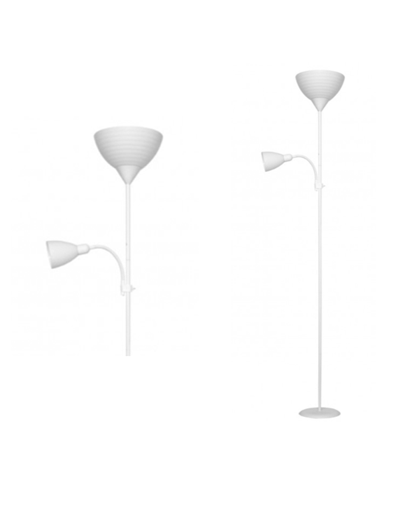 Lámpara de pie color blanco 180cm con pantalla acrílico 1 X 60W E-27 y luz de lectura 1 X 40W E14