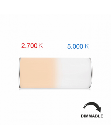 Luminaria portátil con sensor gravitatorio y regulable que permite tener dos tonalidades en un mismo aparato, según posición de la lámpara. Dispone de una batería de litio con hasta 180 horas de autonomía y una recarga micro USB del dispositivo en menos de 4 horas. Bateria de litio de 2200 mAh.
