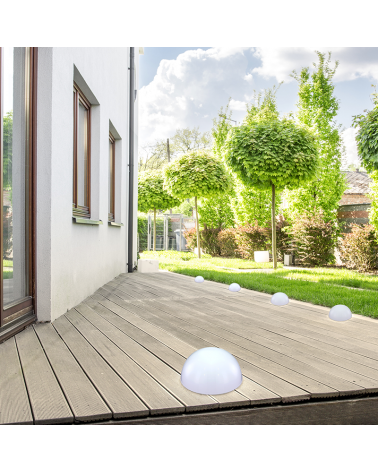 Aplique solar LED IP44 , fabricado en plástico acabado en blanco. Funciona con pilas.