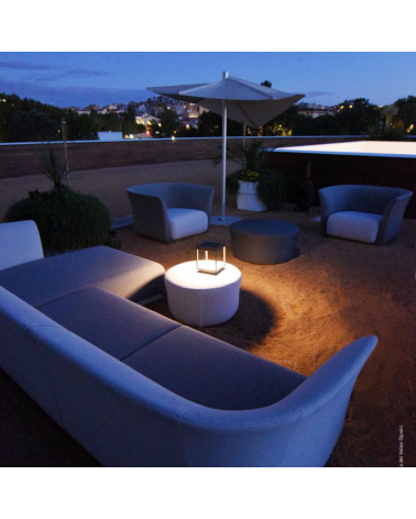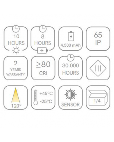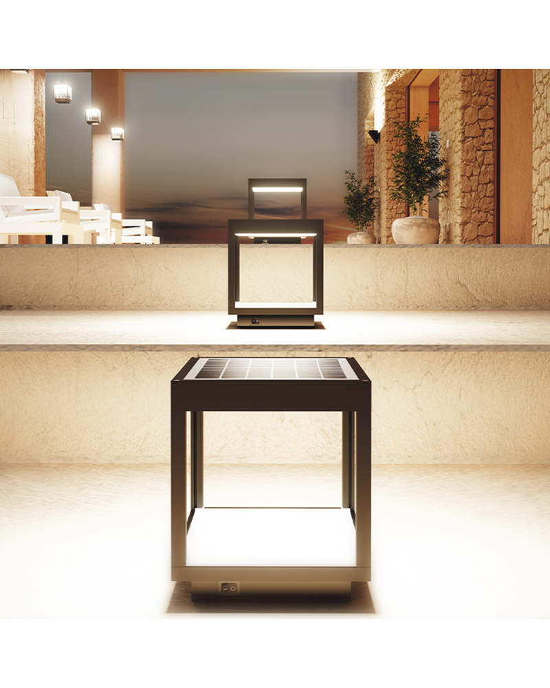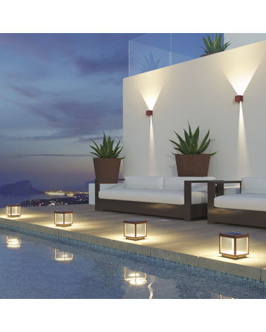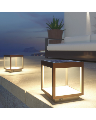 Lámpara solar LED portátil con 3,5W. Fabricado en aluminio, disponible en acabado blanco, negro o corten. Temperatura de color cálida 3000K IP65. Batería de 4500mAh, la cual permite has 8 horas de autonomía.