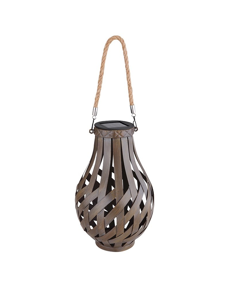 Esta elegante lámpara solar de metal marrón con forma (ø 17.5 cm) puede ser utilizada de manera flexible en tu área exterior. Gracias a la cuerda de cáñamo montada en la parte superior, la lámpara solar de 27 cm puede ser situada tanto en posición colgante como en posición vertical (por ejemplo, sobre mesas).
