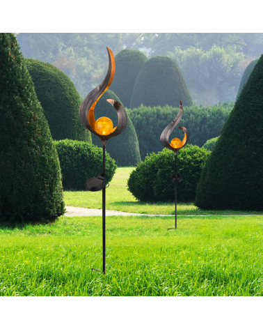 Las hermosas tiras de metal entrelazadas son iluminadas con estilo por la bombilla LED alimentada por energía solar, que proyecta un hermoso patrón. La luz cálida y agradablemente blanca (3000 Kelvin) de la bombilla LED también crea un ambiente atmosférico en tu jardín, terraza o balcón.