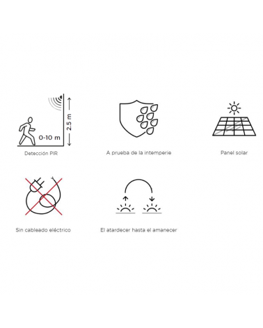 La lámpara solar combina un diseño sofisticado con una funcionalidad excepcional, brindando una experiencia visual placentera tanto de día como de noche. Su sensor de movimiento incorporado garantiza una iluminación cálida y acogedora. Gracias a su LED integrado, es perfecta para iluminar senderos y también para crear el ambiente perfecto en tu terraza.