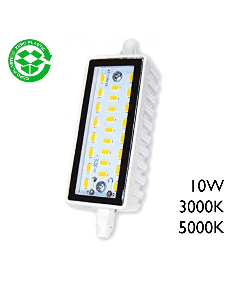 Bombilla LED R7S 10W disponible en 3000K y 5000K de ángulo 360º. 1000 Lm. Elevada eficiencia. 25000 horas de vida.