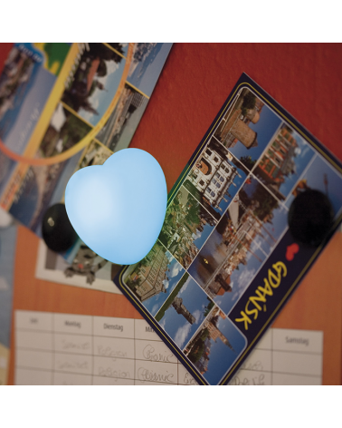 El perfecto regalo para disfrutar del amor. Corazon con luces LED multicolor. Ideal para colocar en neveras, hornos, ... o cualquier parte de la casa u oficina. También sirve para dejar notas pegadas. La luz cambia automática y lentamente de color. También se puede dejar un color de luz fijo. Dispone de botón ON / OFF. Medidas: profundo 30mm x ancho 57mm. x alto 58mm. Luz: multicolor. Pilas incluidas.