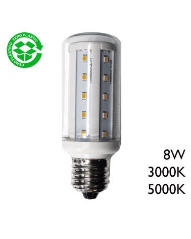 Bombilla tubular LED E27 9W, disponible en luz cálida 3000K, luz blanca fría 4000K y luz blanca día 5000K. Medidas 38x109mm. Con una larga duración de 40.000 horas.
