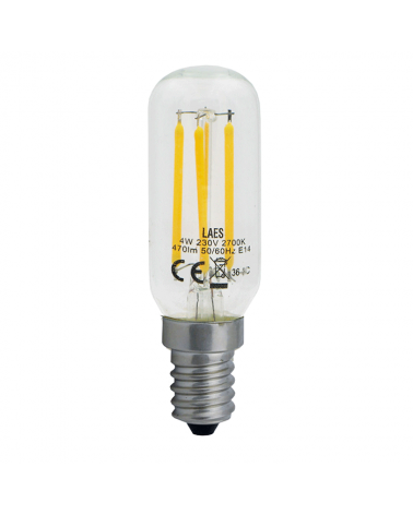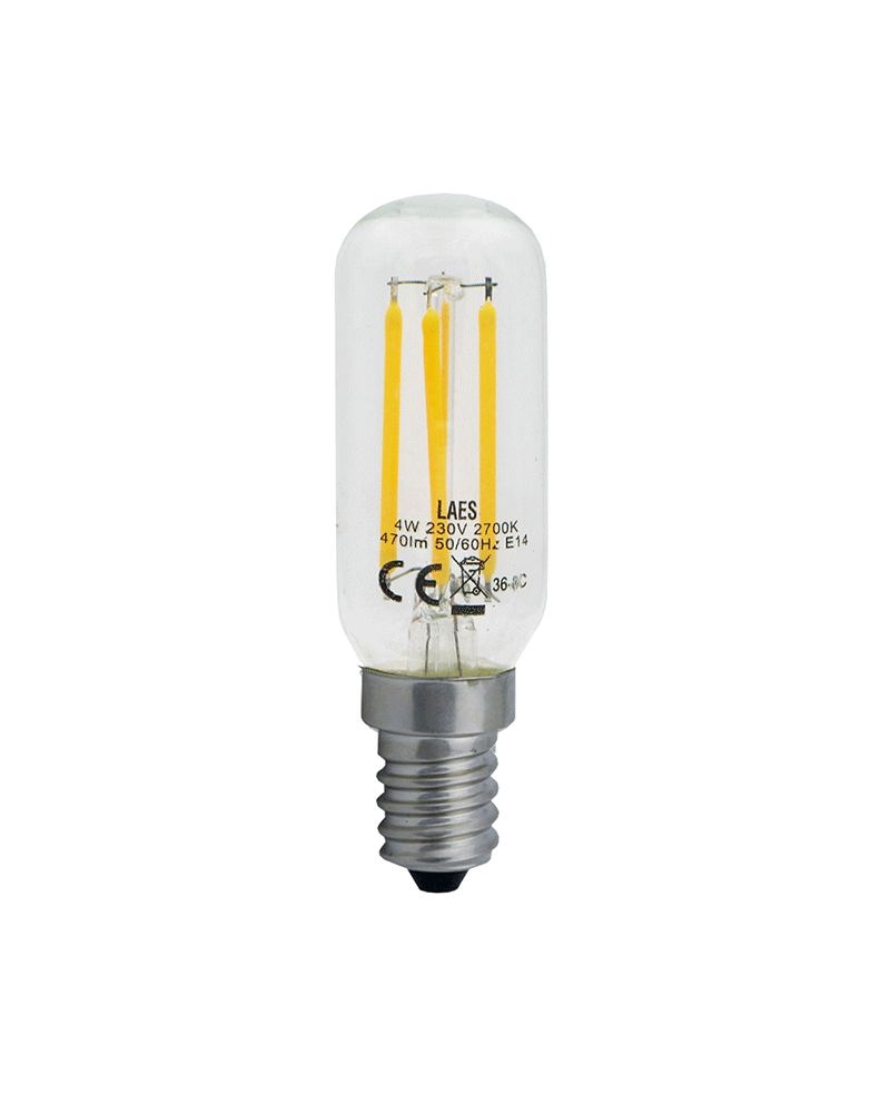 Bombilla Tubular 25 mm. filamentos LED E14 4W 2700K 470Lm.