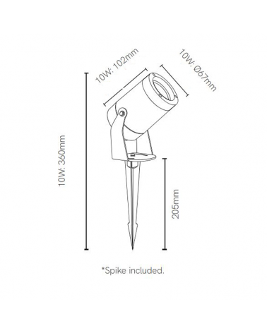 Foco proyector LED de jardin diseñado para uso exterior (IP65). Con una medidad de 36cm de altura y fabricado en aluminio disponible en acabados color blanco o negro. Con una potencia de 10W y temperatura de luz de 3000K. Ideal para la iluminación de jardines. Cable de 24cm.