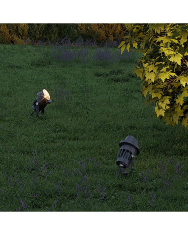 Pincho de exterior LED 27cm de aluminio con visera acabado negro 3W IP65 45º 3000K