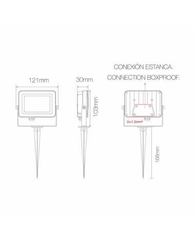Foco proyector LED diseñado para uso exterior (IP65) con piqueta y LED integrado con luz verde otra en tono verde, ideal para la iluminación de jardín. En acabado color corten. El proyector está construido en Aluminio y con pintura AKZO NOBEL. Su cabezal ajustable le proporciona la flexibilidad que se necesita para dirigir la luz y crear el efecto deseado. Está compuesto por una piqueta de Aluminio que, unida al foco LED, permite su instalación tanto en jardín como maceta, así como en pared o techo, proporcionando el escenario perfecto para crear el efecto deseado. También está disponible en 3000K.