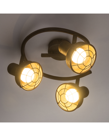 Plafón rústico 25cm 3 focos orientables en metal marrón óxido 45W E14