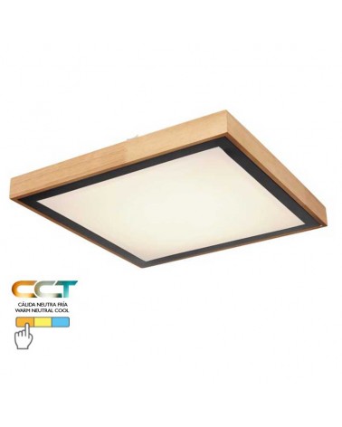 La lámpara de techo LED redonda es una pieza de iluminación moderna con un marco de madera y una placa de circuito LED con marco de metal. Esta lámpara es regulable a través de un interruptor en la base para seleccionar la temperatura CCT pudiendose elegir el nivel de luz que prefieras, con una variedad de opciones de temperatura de color que incluyen luz cálida 3000K, blanco frío 4500K y blanco día 6000K.