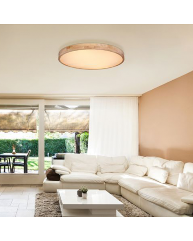 Plafón LED techo 80cm de metal acabado blanco y madera 60W CCT Switch 3000K-6000K