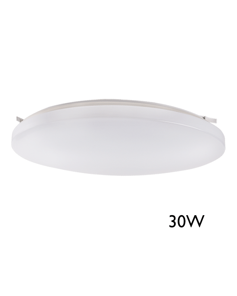 Downlight LED de superficie 30W con sensor de presencia y luminosidad, disponible en luz cálida 3000K y luz blanca fria 4000K , diámetro 38cms apto exteriores IP44 . Ideal para rellanos de escalera, entradas de urbanizaciones, oficinas y lugares de paso.