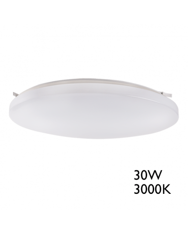 Downlight led de superficie 30W con sensor de presencia y luminosidad, de diámetro 38cms , apto para exteriores IP44, - Acabado: opal. - Medidas: diámetro 380mm, alto 68mm. - Ángulo luz 125º. Encendido inmediato. - Material: cuerpo de aluminio, difusor de polimetilmetacrilato opal. - Clase energética: A+. Ahorra en tu factura de luz. - Larga vida útil (más de 25.000 horas).