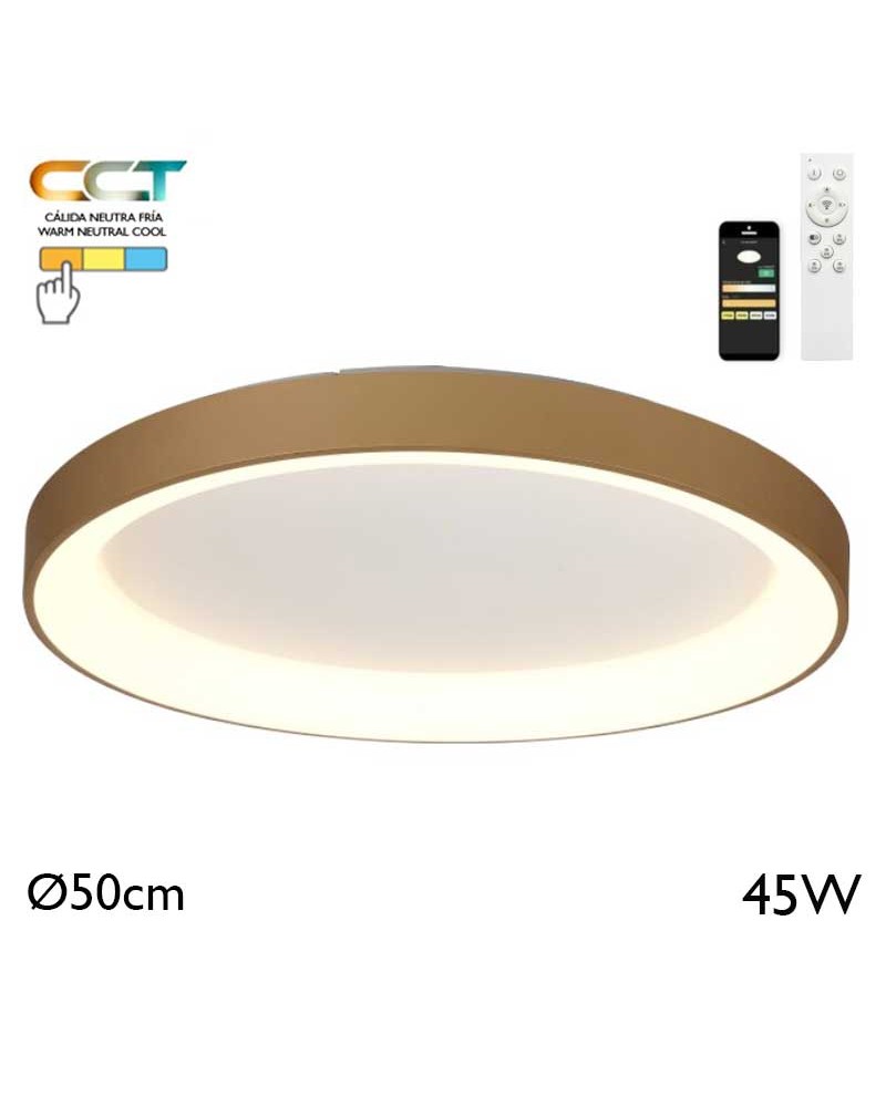 Plafón LED de 50cm de diámetro 45W de metal y acrílico CCT 2700K/4000K/5000K REGULABLE con mando y app