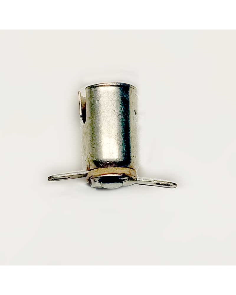 Portalámparas metálico bayoneta rosca B-9-S. Con terminales para soldar los cables, es ideal para circuitos impresos.