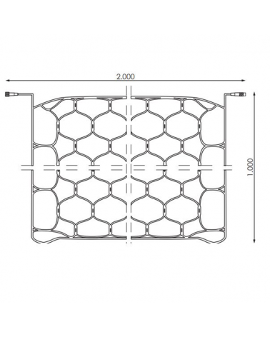 Medidas: longitud de 2 metros; altura 1 metro. Lámparas: compuesta por 98 luces LED Consumo total: sólo 5,5W Empalmable: se puede acoplar hasta un máximo de 10 redes con un solo enchufe. Apto para exteriores, IP65. Necesita cable de alimentación no incluido.