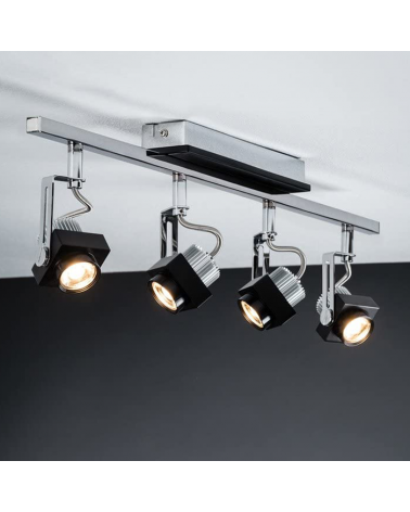 Regleta acabada en cromo y negro diseño moderno 4x20W LED 2700k