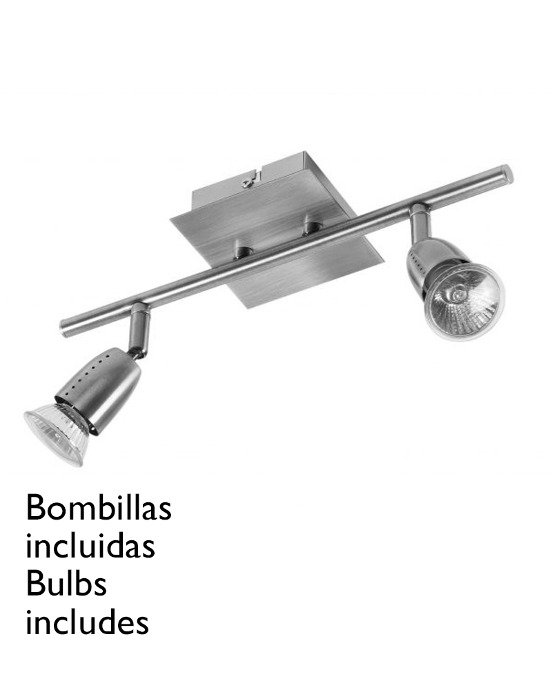 Lampara de techo con focos orientables 32cm 2xGU10 acabado niquel satinado bombillas incluidas.