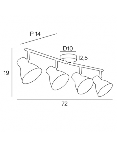 Regleta 4 focos 72cm de metal acabado negro pantallas orientables E14 40W
