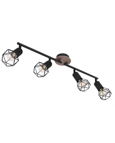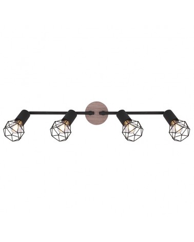 La regleta de techo vintage industrial con 4 focos oscilantes es el complemento perfecto para iluminar tus espacios con estilo. Su acabado en portalámparas en negro y base en madera, crean una atmósfera acogedora y elegante.