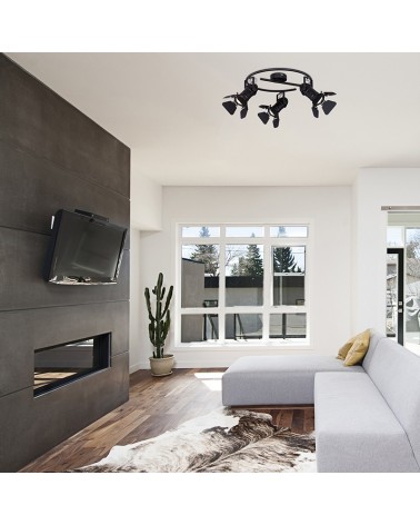 Los tres focos ajustables del plafón de techo estan sugetos en una barra de metal en forma de e , Y permiten dirigir la luz hacia donde la necesites, mientras que las aletas oscilantes ofrecen una mayor flexibilidad en la orientación de la luz. Con sus tres bombillas GU10 de 50W, puedes personalizar la iluminación de cualquier estancia.