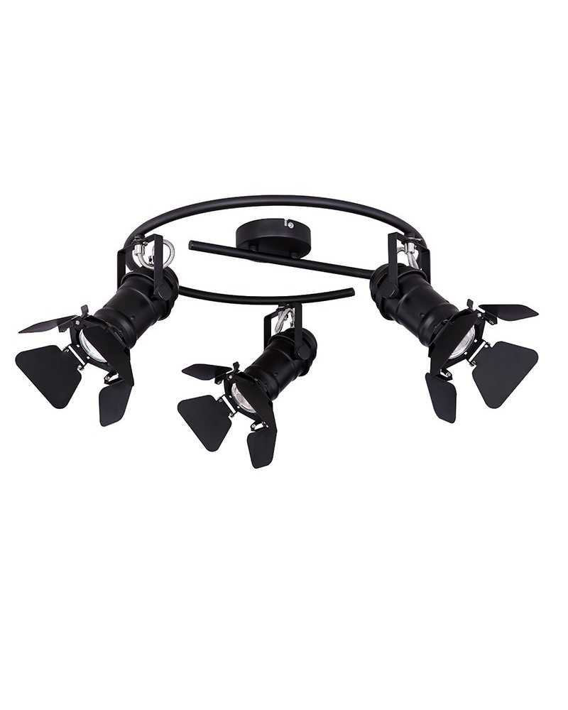 Plafón de techo vintage 40cm industrial con 3 focos Cinema Stage 3 X GU10 Negro
