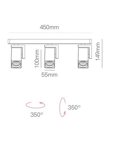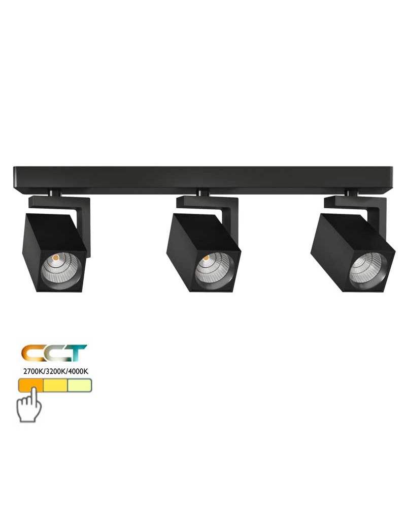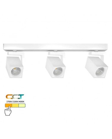 Regleta 3 focos orientables forma cuadrada 45cm aluminio LED 24W CCT Switch 2700K/3200K/4000K
