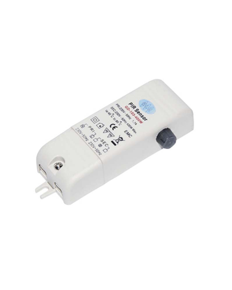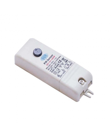 Detector de presencia lateral. Una buena solución para mayor eficiencia de la energía. Si aplicamos sistemas de control en función de presencia conseguimos más ahorro y aumentamos la vida del LED u otra lámpara. - Potencia lámpara (máx): 220W - Tensión nominal de entrada: 90-265V - Corriente nominal: 0,09/0,5A - Frecuencia: 50 - 60 Hz. - Temperatura de trabajo: -20 a +40ºC - Ángulo de detección frontal: 360º - Ángulo de detección lateral: 120º - Distancia del sensor a la carga: 2 - 4 metros - Tiempo de detección (mín-máx.): 20 - 60 segundos - Peso: 35 gr. - Dimensiones: 87x31x20 mm. - Cumplimiento de normas: * Directiva de Baja Tensión 2006/95/CE * Directiva de Compatibilidad Electromagnética 2006/108/CE