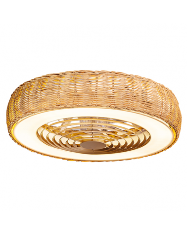 Ventilador de techo 25W Ø58,5cm plafón LED 55W ratán control remoto IP44 luz REGULABLE y mando