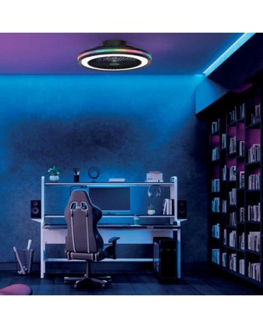 Ventilador inteligente de techo negro 20W Ø46,6cm motor DC LED 40W CCT y RGB control remoto